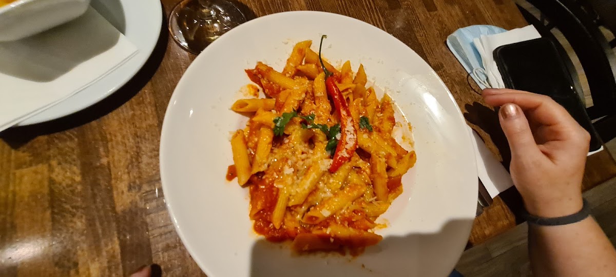 Was extremely busy as we're offering 99p pizza and pasta, what a bargain, hadn't originally booked for that so was very happy with the price. Gentleman welcoming you in was less than welcoming, understand were busy but customer service goes a long way and so would a smile. Young girl that served us though was great although she was extremely under pressure with the sheer amount of guests. Well done! No pizza cutters so had no choice but to cut with knife and fork which was comical and very long wait for drink order.